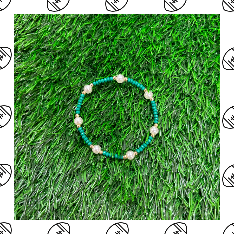 Add Green & Pearl Game Day Beaded Bracelet to the cart