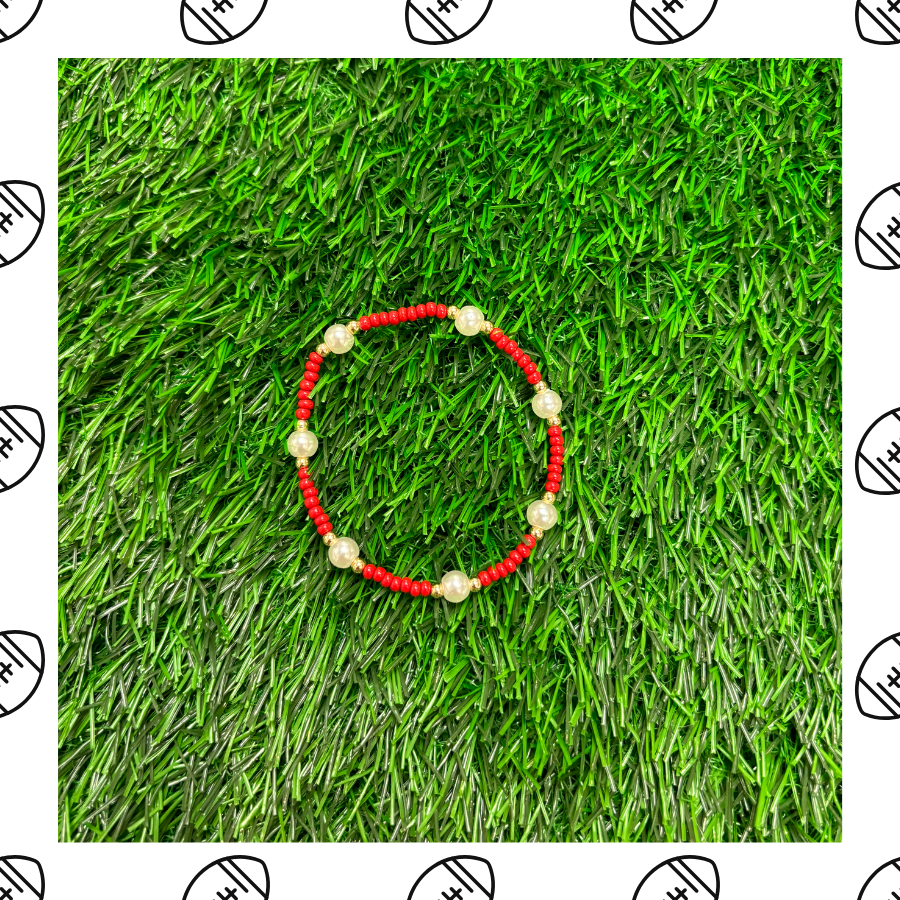 Add Red & Pearl Game Day Beaded Bracelet to the cart
