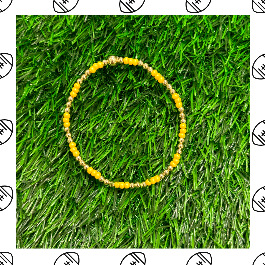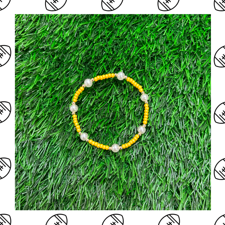 Yellow & Pearl Game Day Beaded Bracelet
