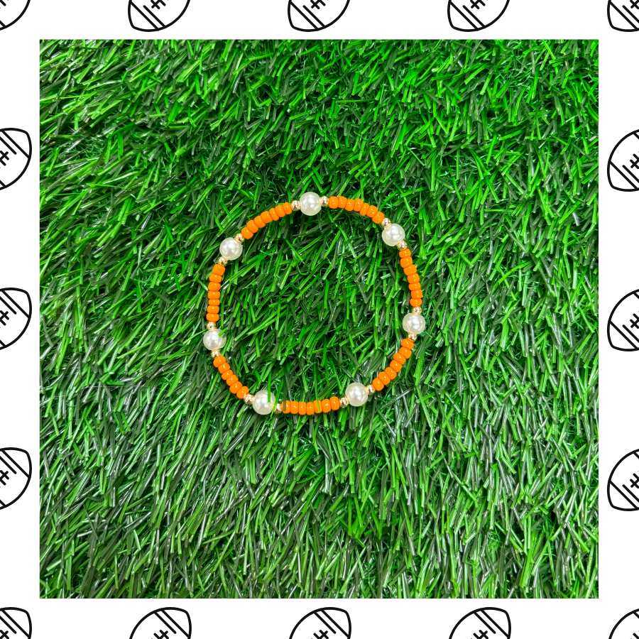 Burnt Orange & Pearl Game Day Beaded Bracelet