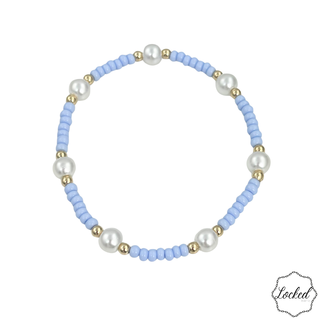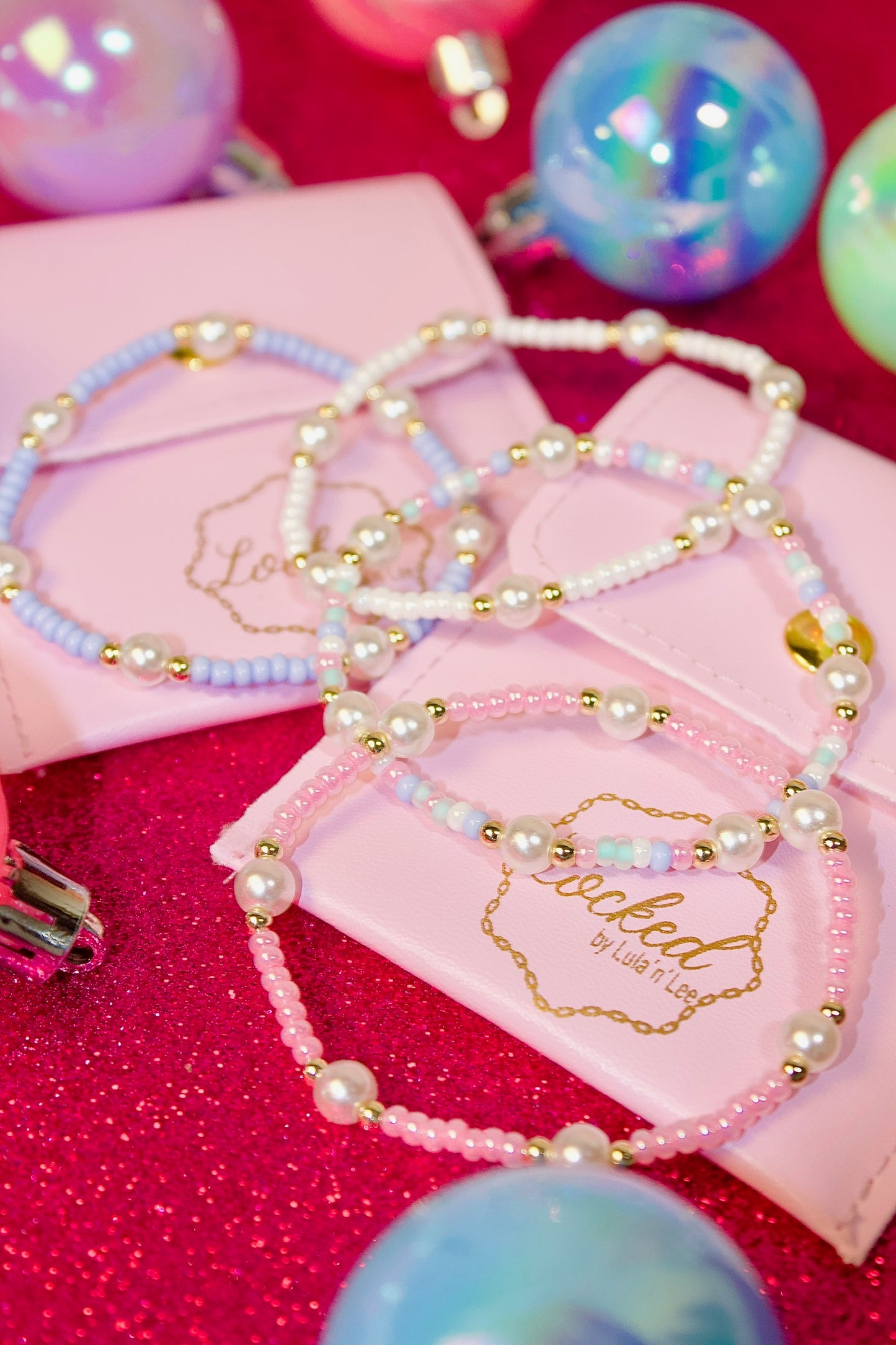Sugar Plum Sparkles - Periwinkle and Pearl Beaded Bracelet
