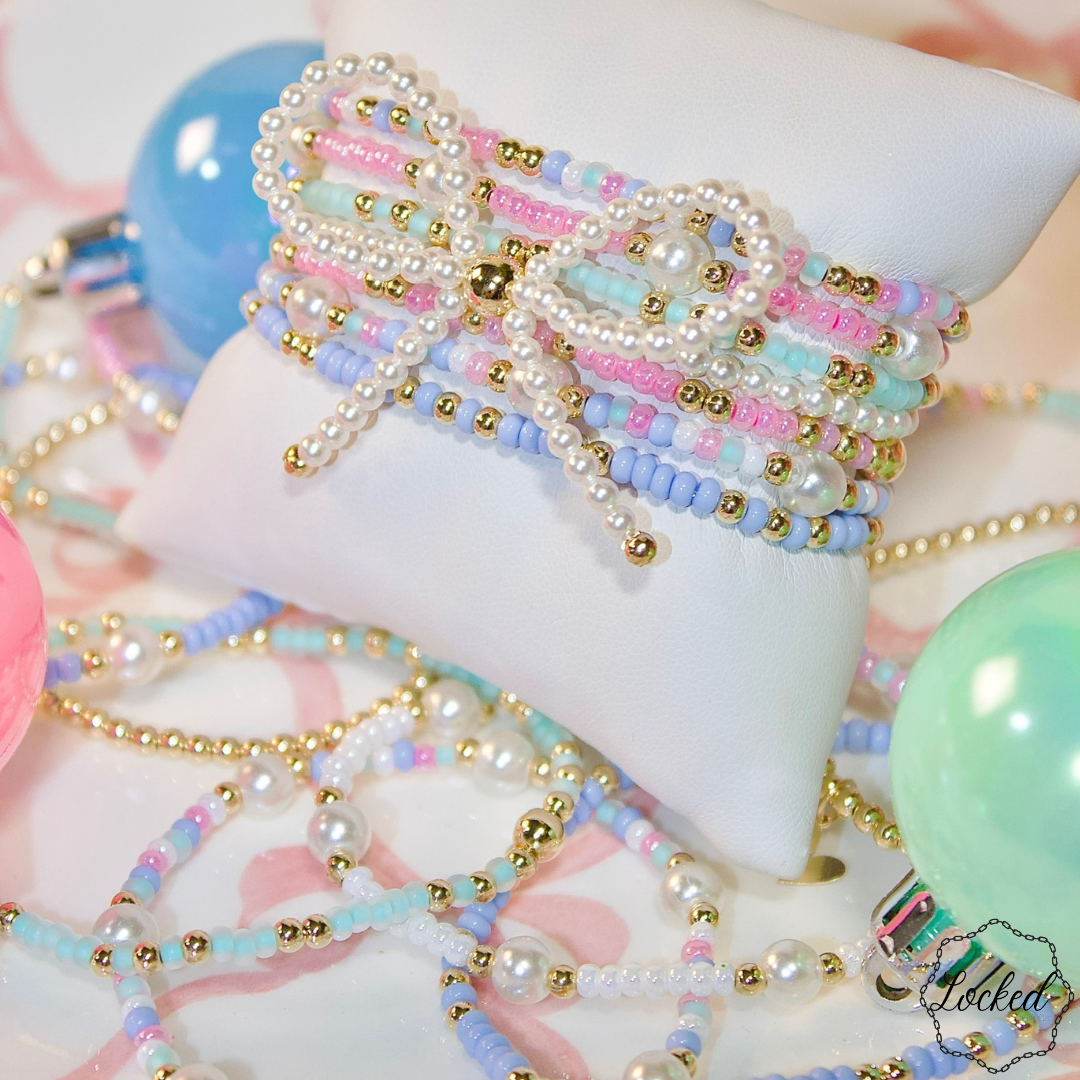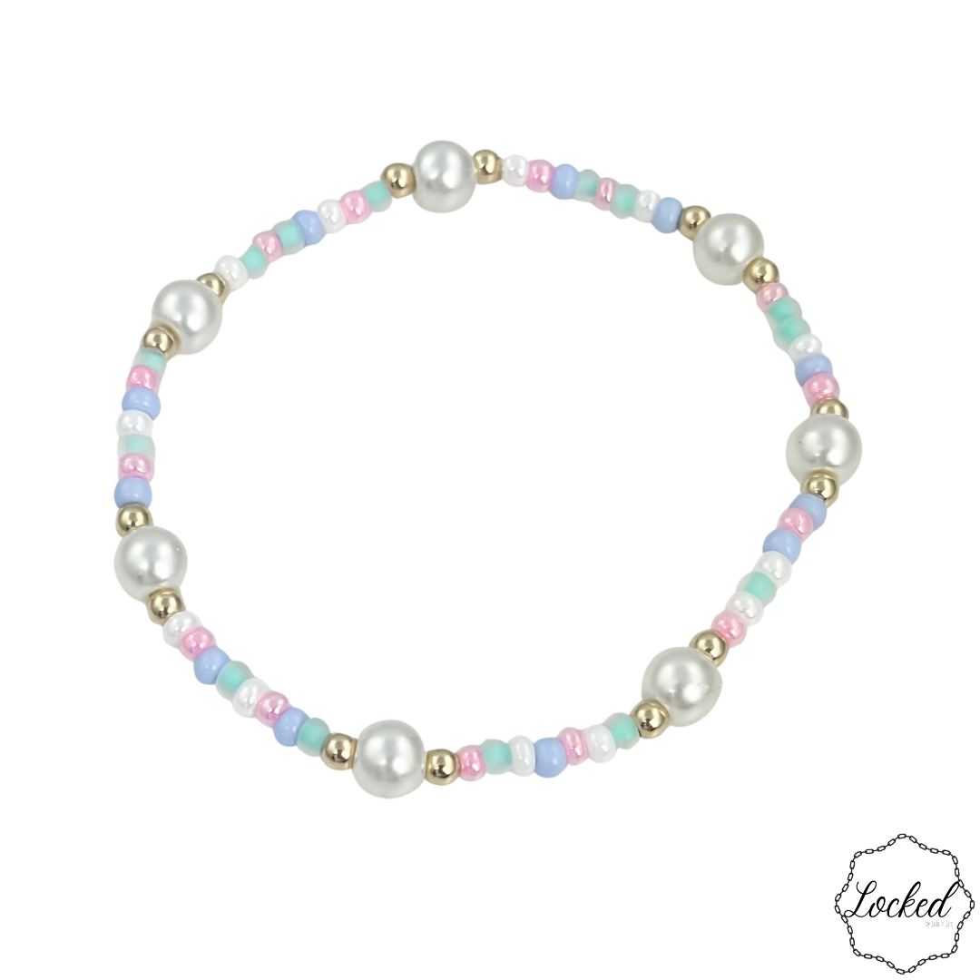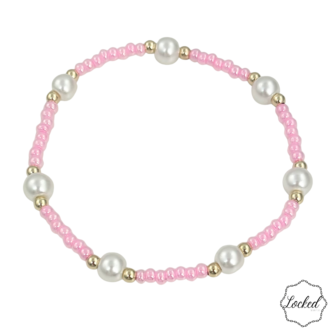 Sugar Plum Sparkles - Bubblegum and Pearl Beaded Bracelet