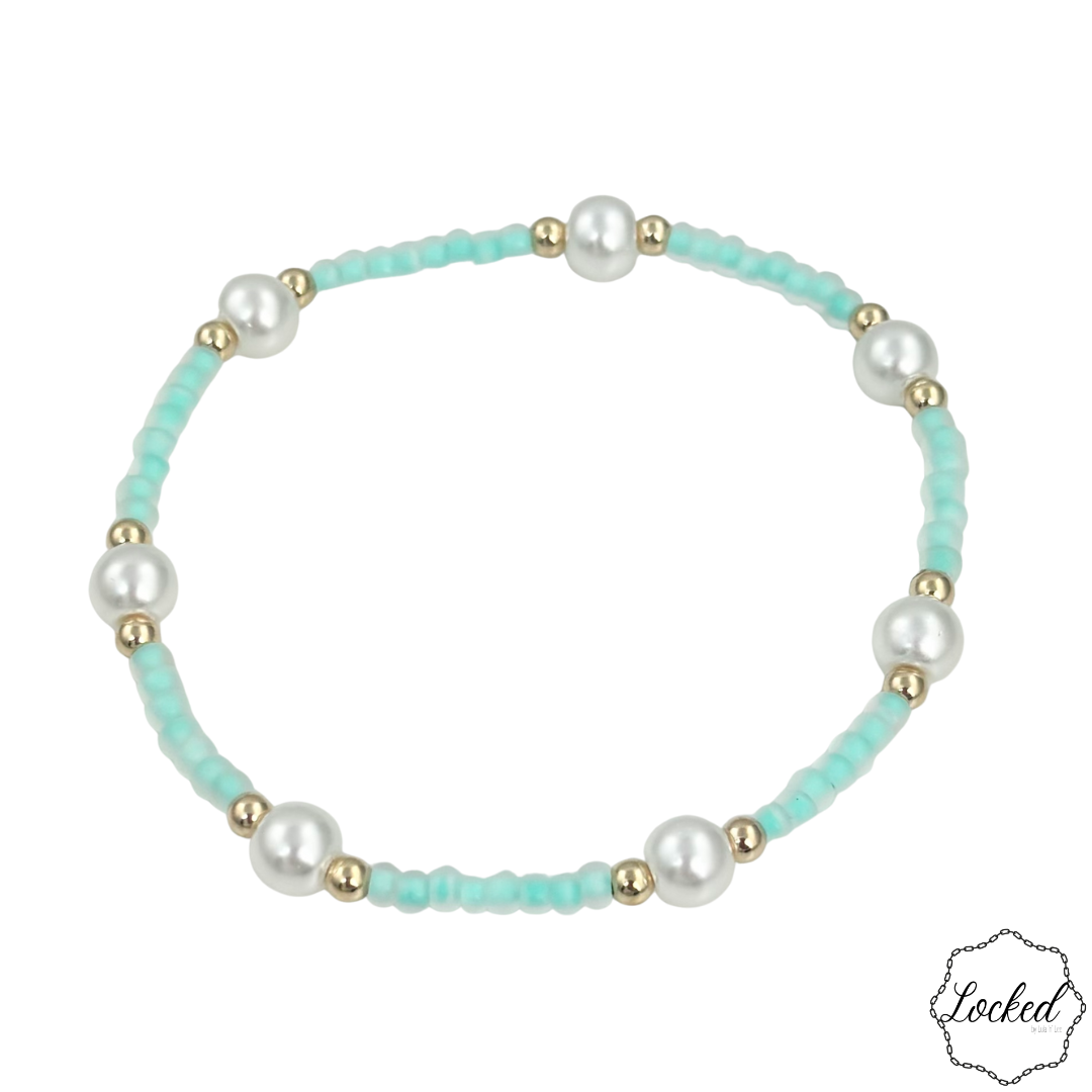 Sugar Plum Sparkles - Mint and Pearl Beaded Bracelet