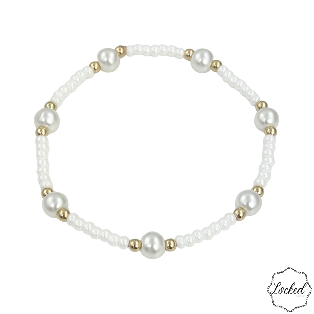 Sugar Plum Sparkles - Snowy and Pearl Beaded Bracelet