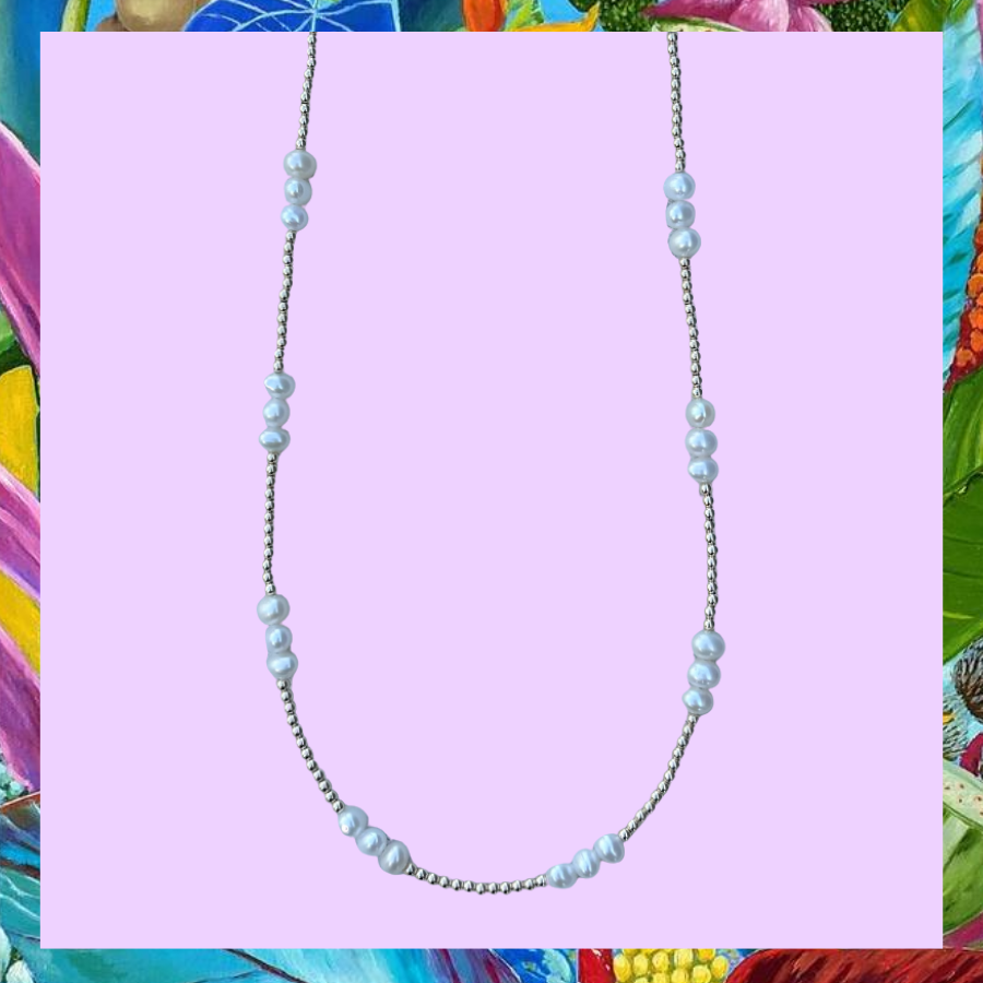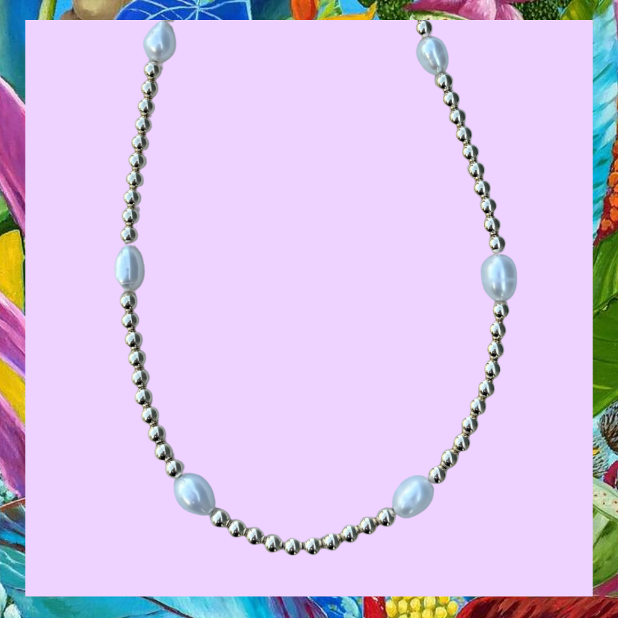 Classic Gold Filled and Natural Pearl Beaded Necklace - 80