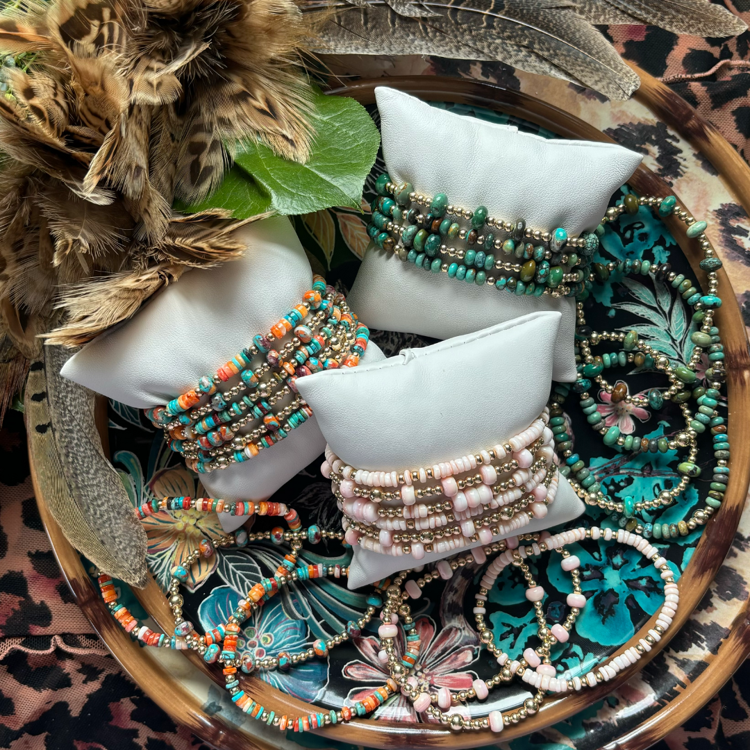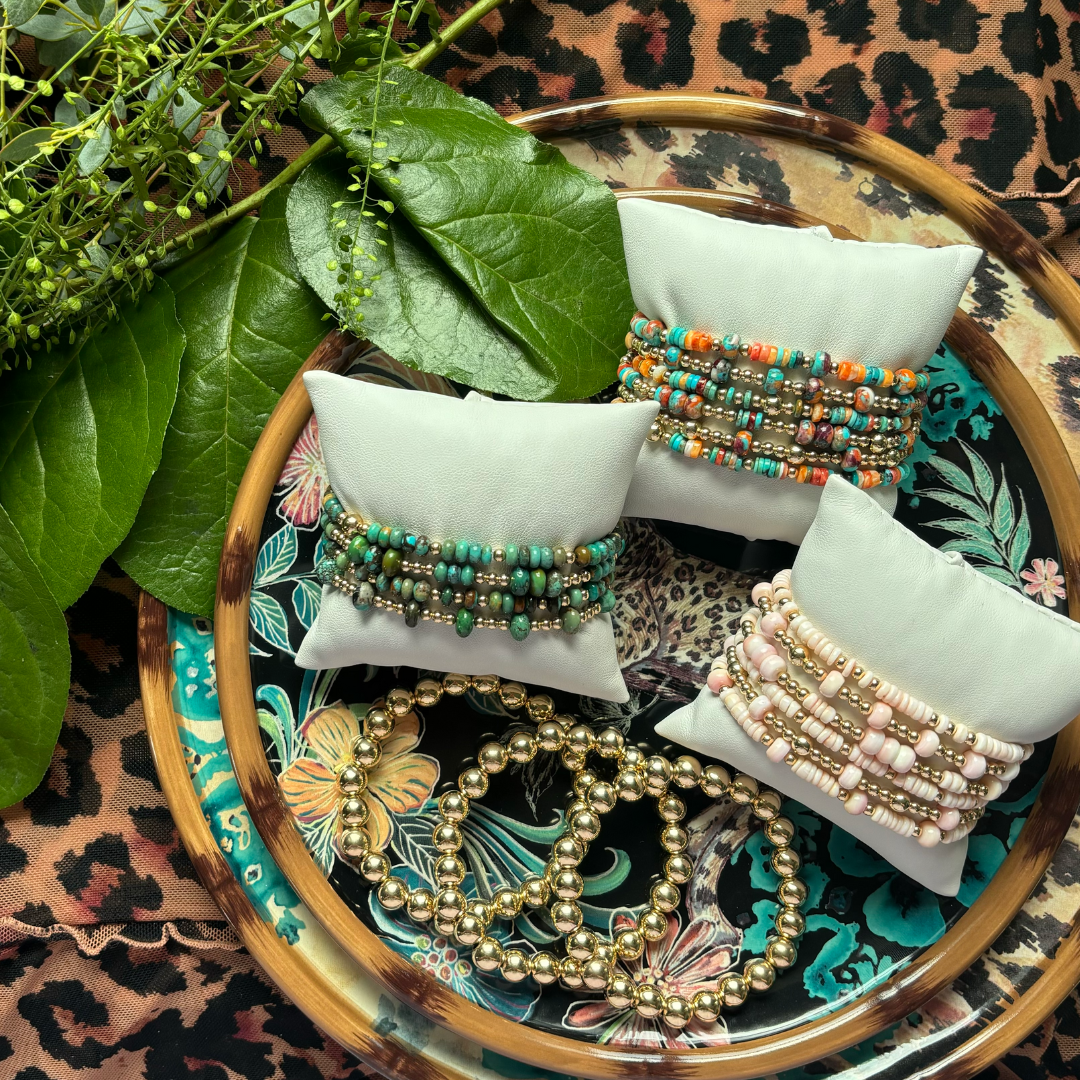 Classic 3mm gold filled beaded bracelet with Natural Turquoise and 5mm gold filled accents
